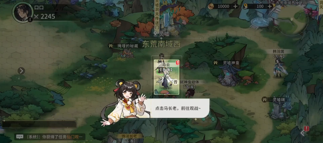 3、这里点击马长老开始观战;