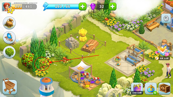 玩家可以在小岛上找到带有果子的植物并且点击。