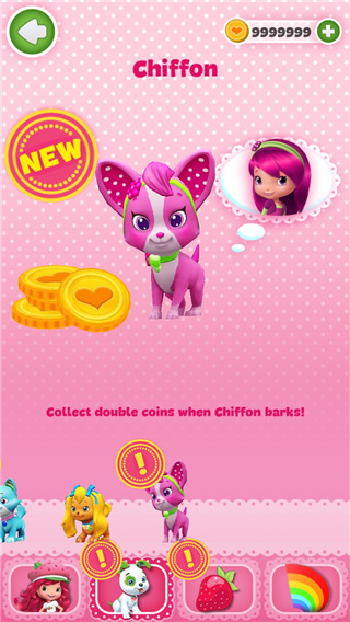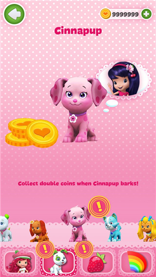 2、Cinnapup,解锁需要3450个金币,它对应的主人是头上带有发卡的公主,他们两同时挑战的时候,收集的金币数量也会翻倍。
