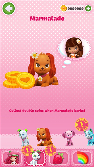 1、Marmalade,解锁需要2950个金币,它对应的主人,是黑色皮肤的公主,但他们两同时在一起的时候,我们每一局收集的金币数量会翻倍。