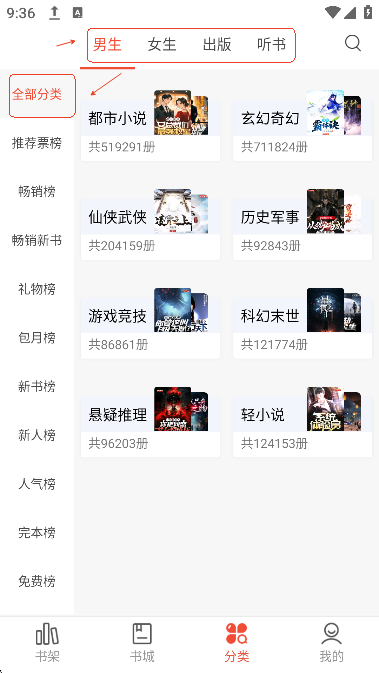 也可以在分类页面通过书籍分类和书籍排行来挑选自己喜欢的小说