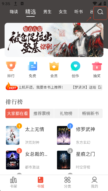 登录后,用户们可以直接在书城搜索栏搜索自己喜欢的小说