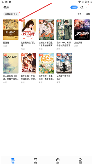 4、在书架页面,即可看到刚才加入的小说。